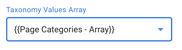 Now that you have your taxonomy values captured in Tag Manager variables, you can simply select them in the drop-down menu for the **Taxonomy Values Array **configuration option, like so: