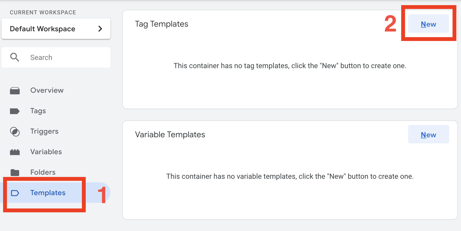 Next, in your Tag Manager container select Templates > New.