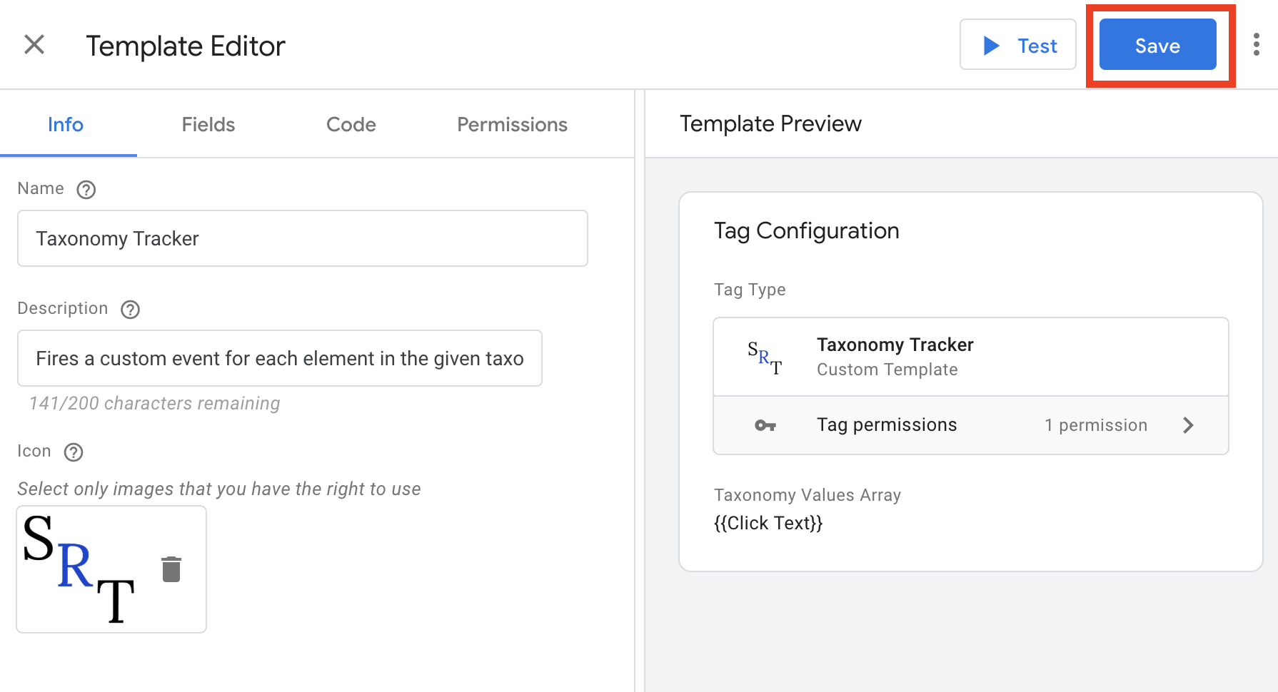 Thanks to Google Tag Manager’s new custom template feature, installing the Taxonomy Tag requires just a few clicks.