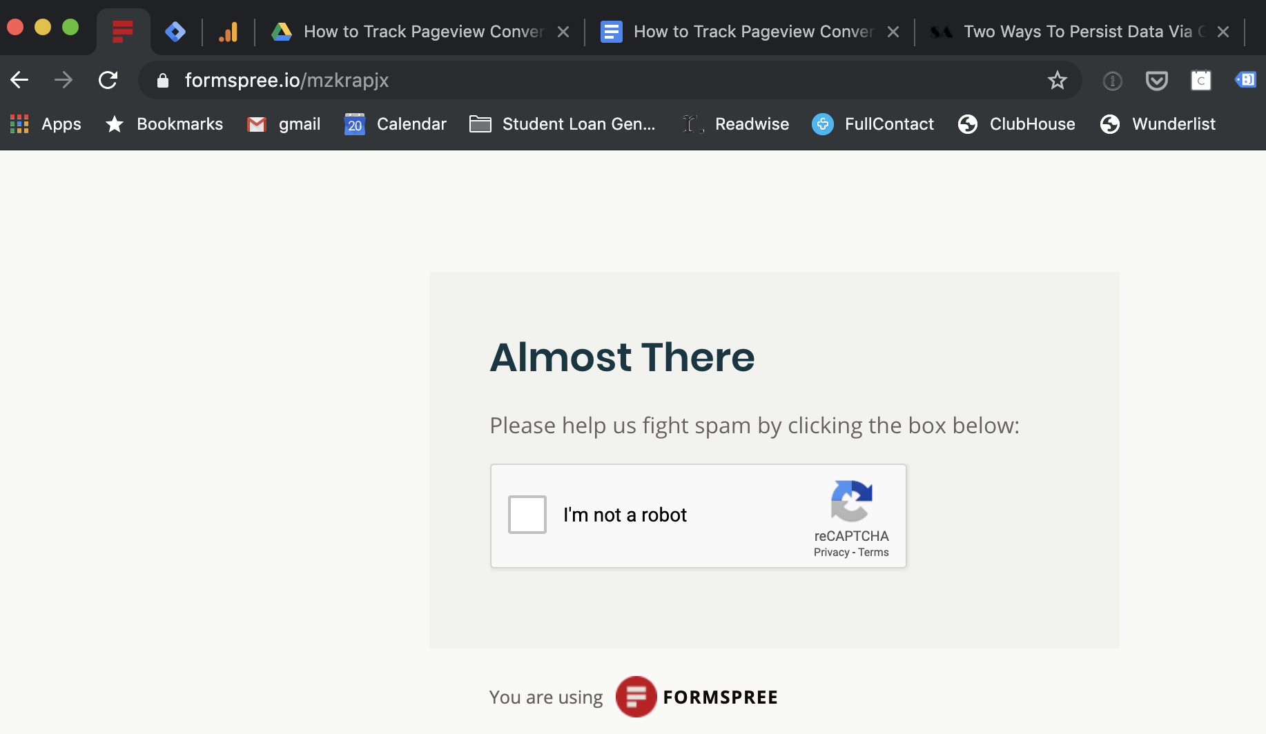 And bam. I’m done. Now the conversion will only fire when the user comes from the Formspree reCAPTCHA page.