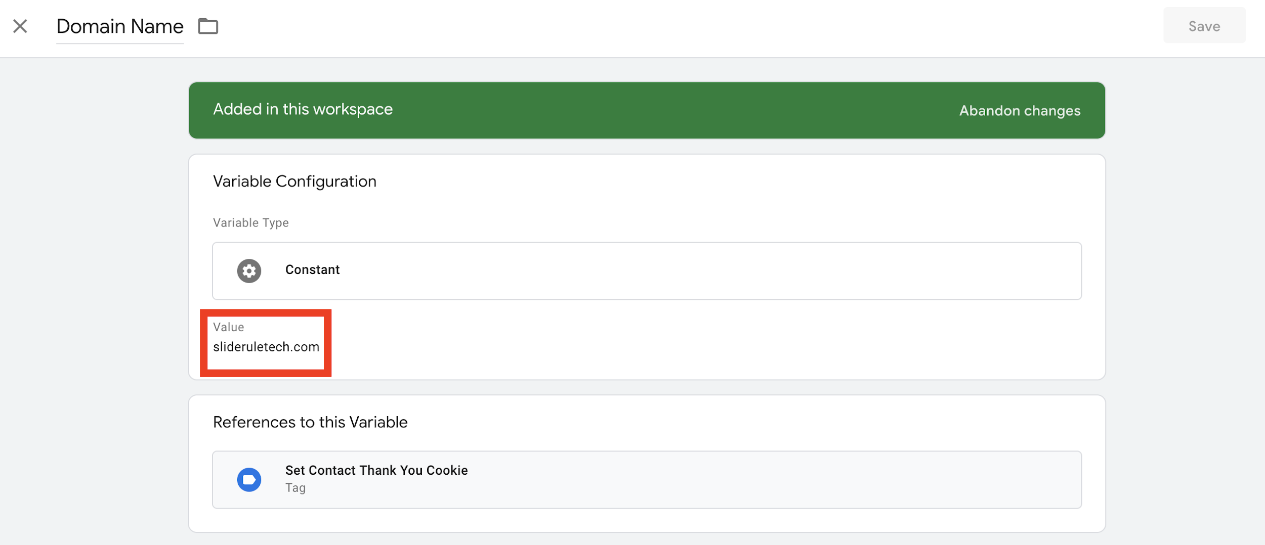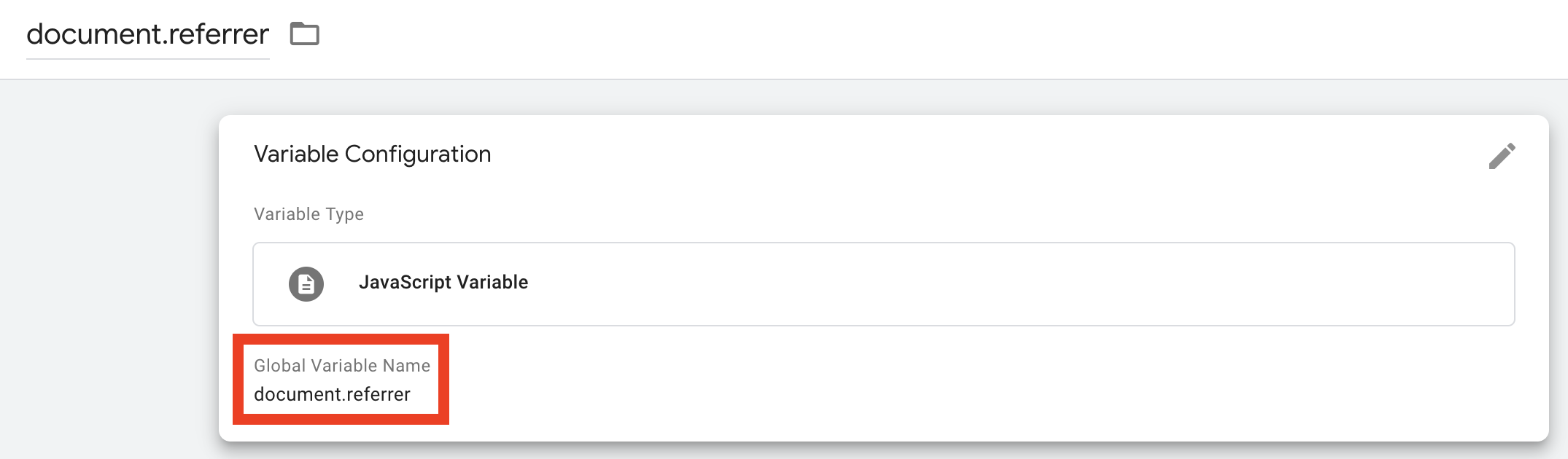 First, I create a JavaScript variable to track the document.referrer variable (Simo Ahava recommends you do this anyway and I agree).