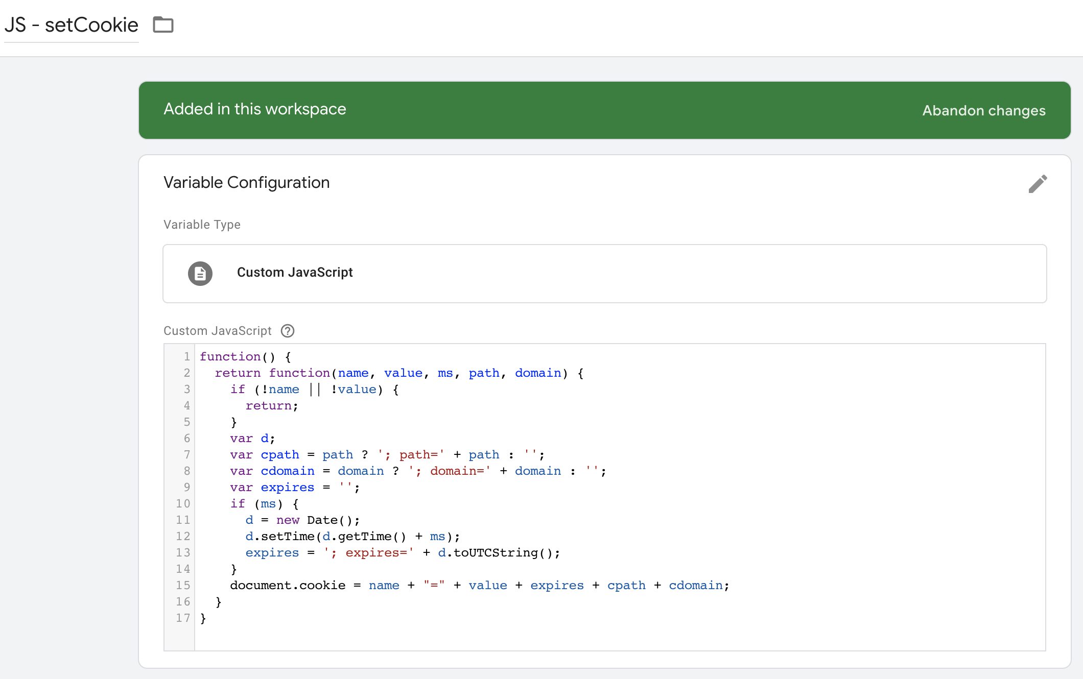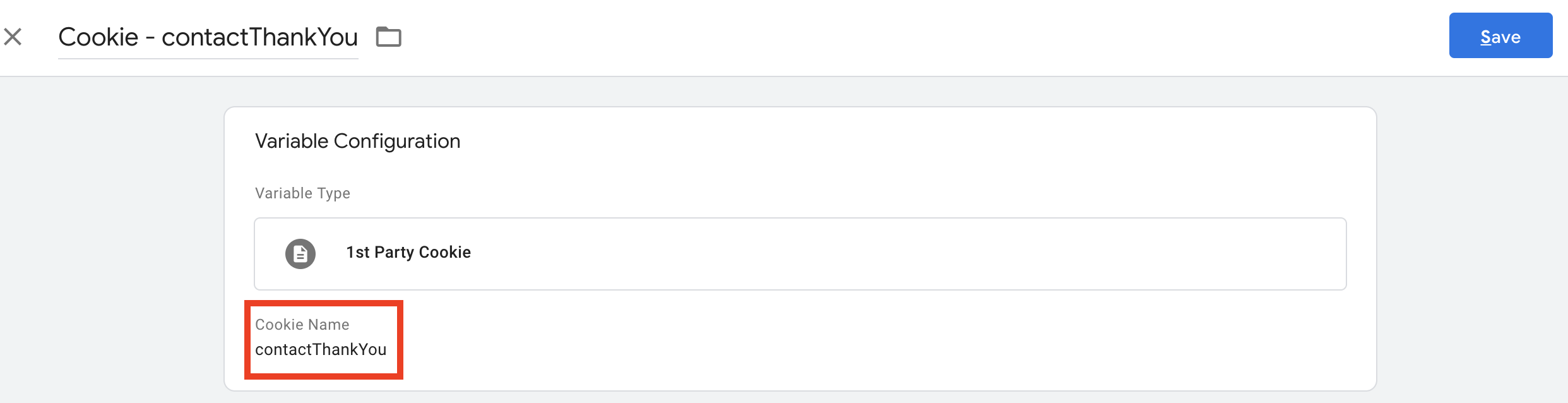 Next, create a Google Tag Manager 1st Party Cookie variable that will store whether or not the user has visited conversion page yet.