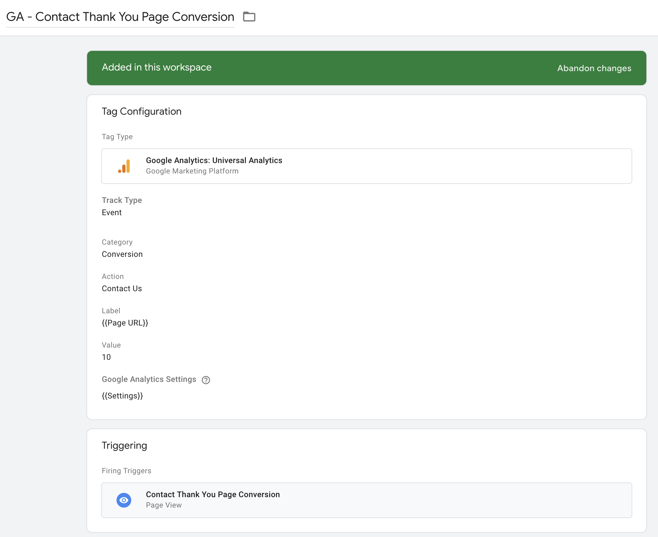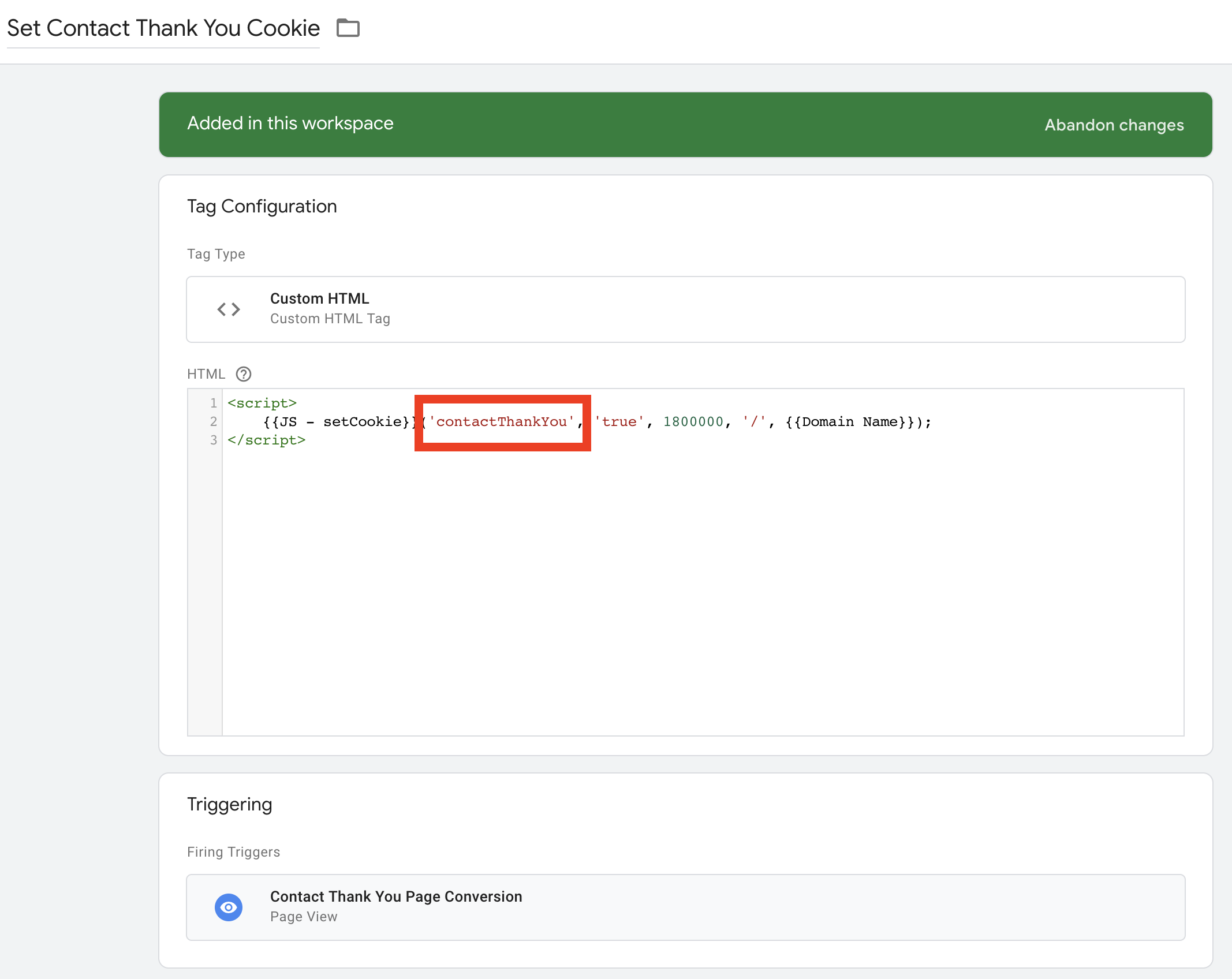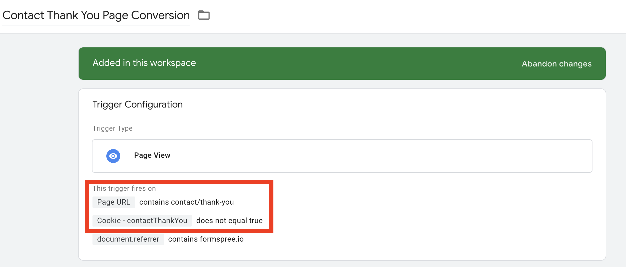 Now because of the contactThankYou cookie, the trigger above will only fire