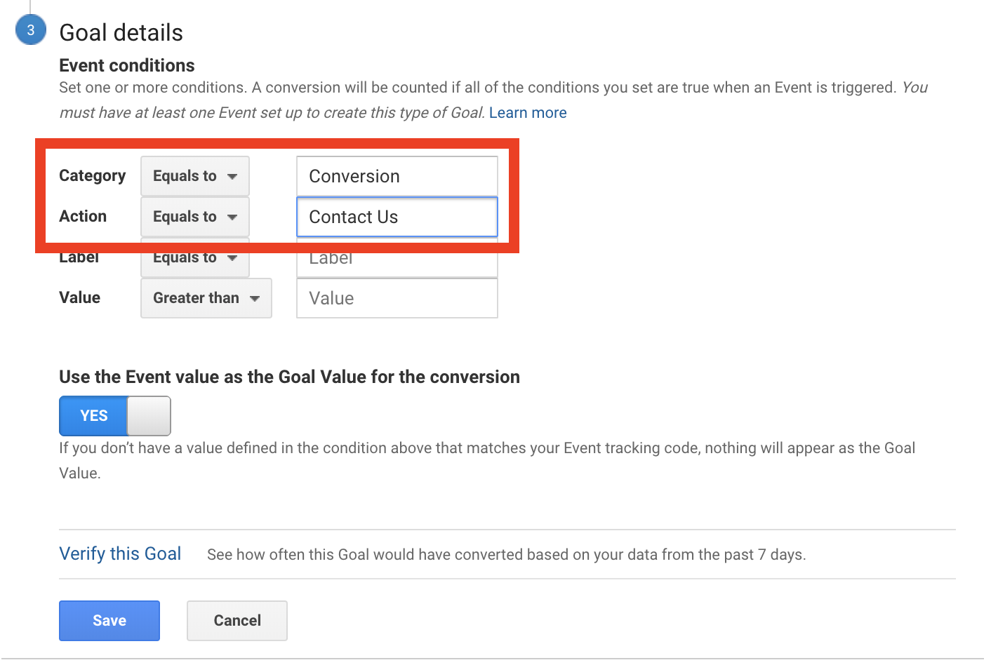 For instance, with a plain old Destination Goal, if a user arrived at my thank-you page without filling out my contact form, Google Analytics would count that as a conversion.